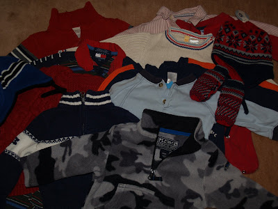 finding a box of sweaters and long sleeved shirts that was forgotten and will fit Summit this winter!